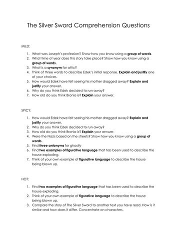 Download SILVER SWORD CHAPTER QUESTIONS Hardcover
